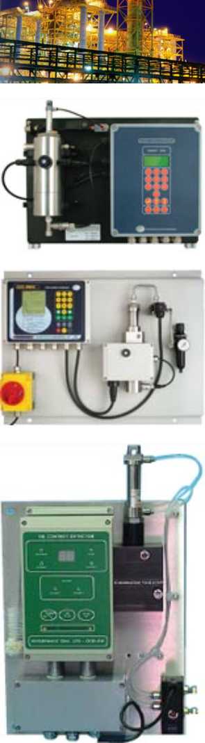 Multiple optical sensors measures the combination of light absorbed and scattered by oil droplets in the sample stream. The sensor signals are read by a microprocessor which uses sophisticated algorithms to determine the concentration of oil and solids in the stream. The oil concentration is displayed on an alpha numeric display. A microprocessor drives a 4-20 mA current loop output which represents the concentration of oil. Two volt free alarms are driven when the oil concentration exceeds the set points. An Autoclean system is included to ensure the accuracy of the optical measuring system is maintained over extended periods of operation.
